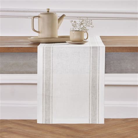 Saro Lifestyle Striped Woven Table Runner, 16"X72", Ivory