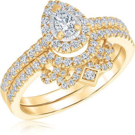 Ellaura Women's 5/8Ctw Pear Diamond Crown Yellow Gold Engagement And Wedding Ring Bridal Set | Glow Collection, Ring Size: 7.5