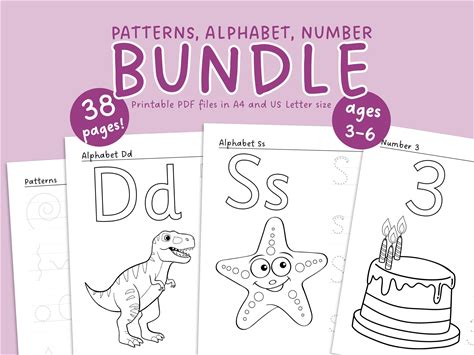 Pattern Alphabet Number Tracing Worksheets, Preschool Writing Practice (38 Pages)