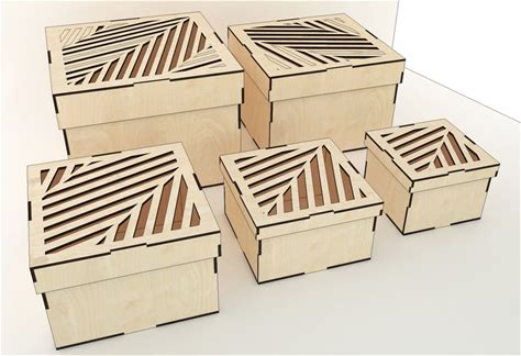 Square Box With Pattern, 5 Different Size, For 1/8" Or 3.1mm Thk Wood - Svg / Pdf / Eps / Dxf Laser Cut File / Glowforge - Instant Download