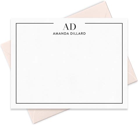 Fairmont & Grove Personalized Note Card & Envelope Stationary Set With Border, Monogram And Full Name, Custom Stationery Set Of Flat Notecards In