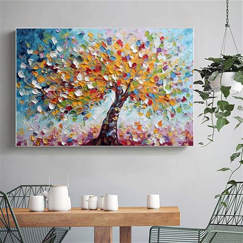 Handmade Oil Painting Canvas Wall Art Decoration Abstract Colorful Fortune Tree Beautiful Landscape For Home Decor Rolled Frameless Unstretched Painti