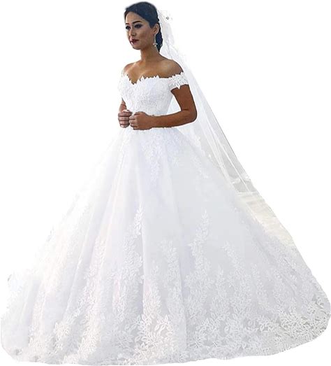 Zhangyo Princess Puffy Wedding Dresses For Bride Off The Shoulder Bridal Gown Puffy Tulle Lace Wedding Dress Ball Gown