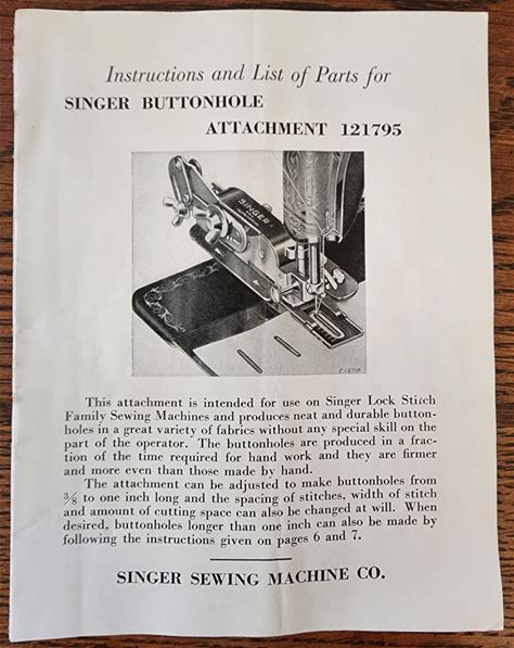 Singer Buttonhole Attachment - Instructions for Singer