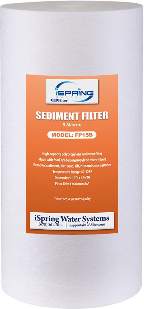 Ispring FP15 NSF Certified Sediment Water Filter Cartridges Replacement, 5 Micron 10" X 2.5" Universal Sediment Filter, 15,000-Gallon Multi-Layer