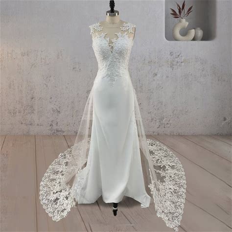 Crepe Lace Wedding Dress Bridal Gown Custom Made Mermaid 2-28W Sleeves