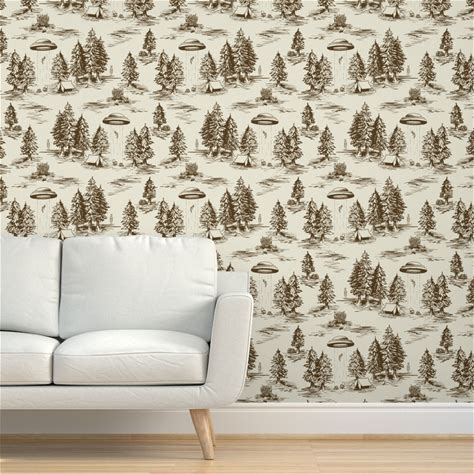 Peel And Stick Wallpaper Large-Scale Brown Alien Abduction Toile De Jouy 2' X 3' Removable