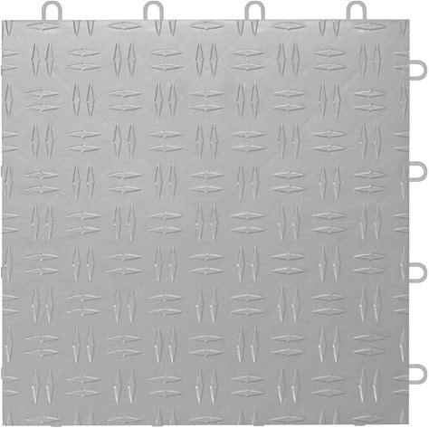 Geartile 12" X 12" Diamond Pattern Interlocking Floor Tiles (24 Pack, Silver)